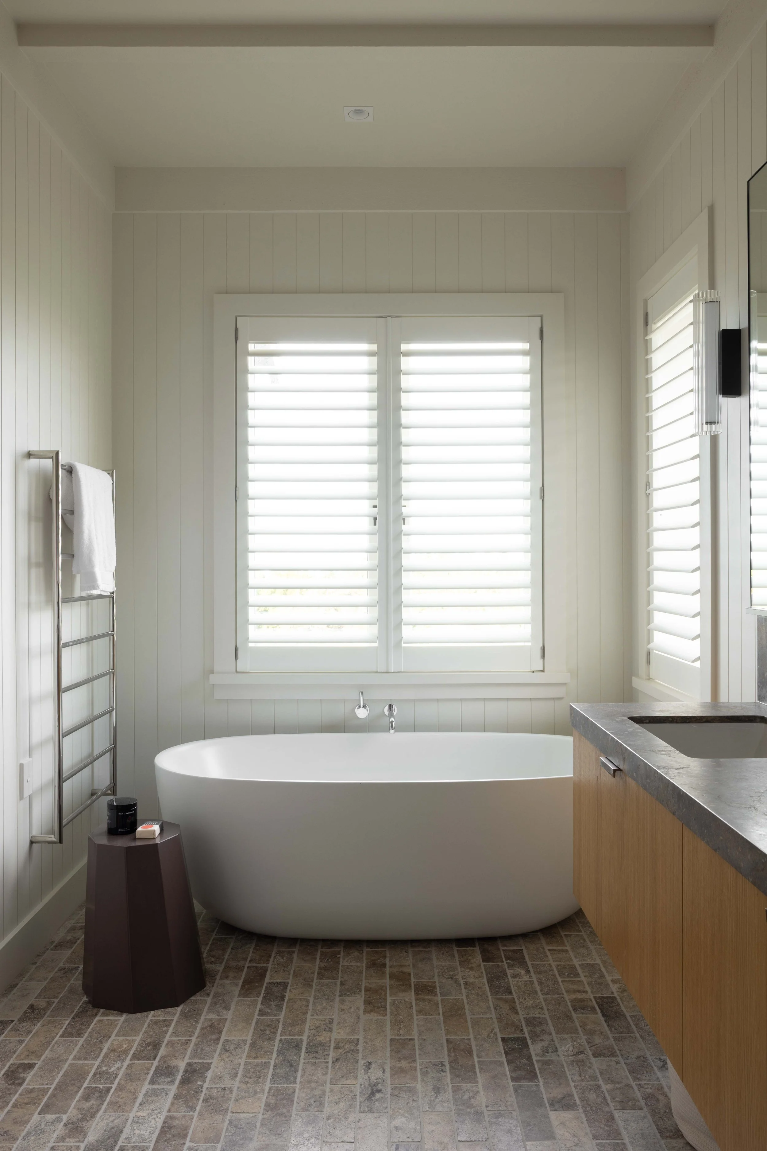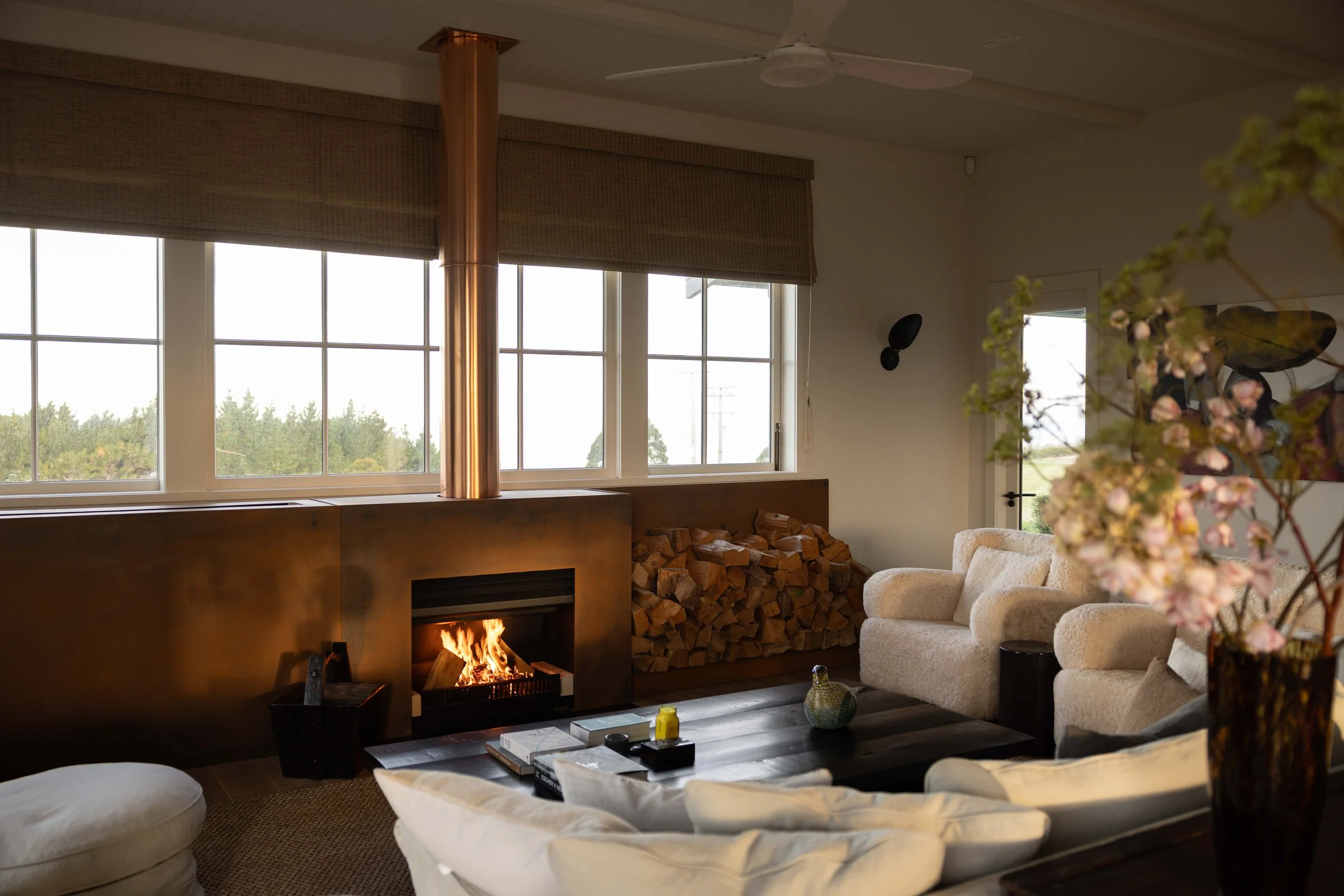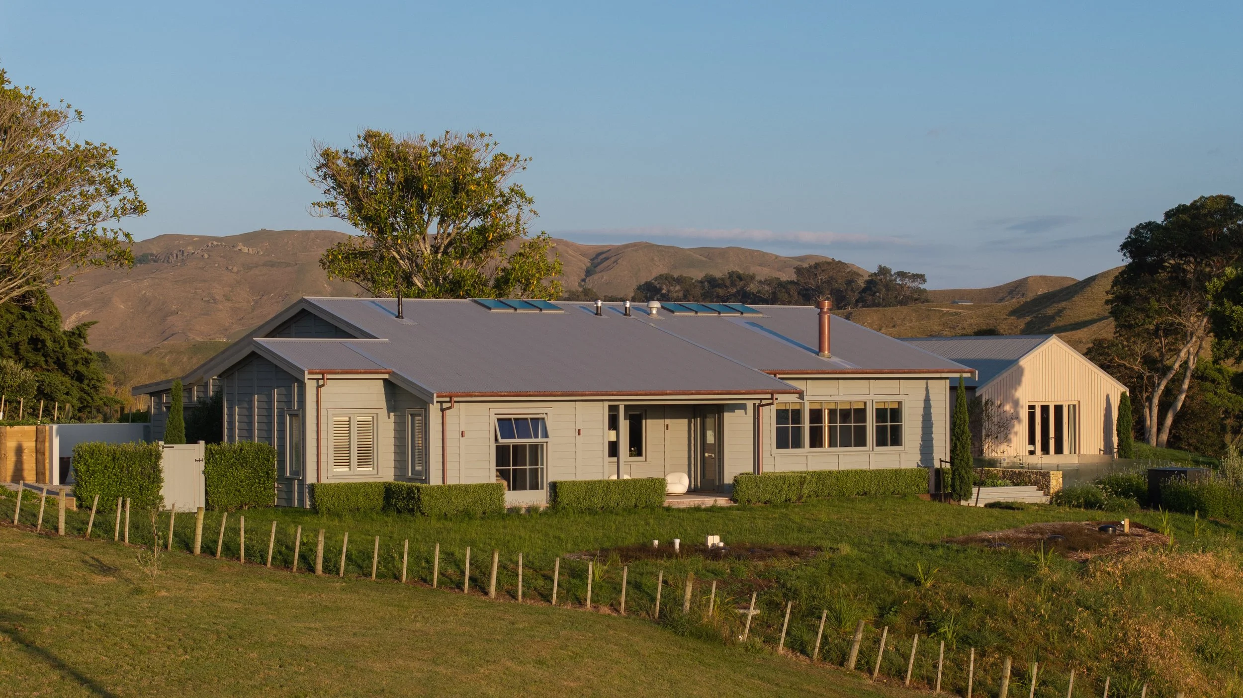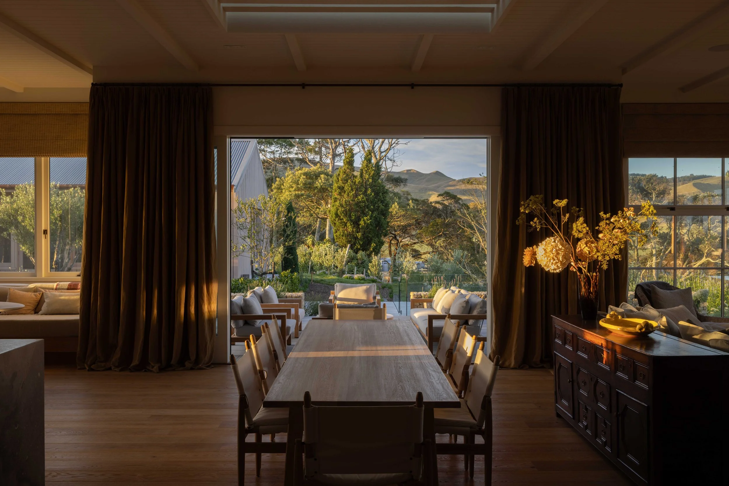 A modern farmhouse with a European accent, this retreat at Ocean Beach in Te Matau-a-Māui/Hawke’s Bay, designed by brigitchristiestudio and built by BNL Construction for owner Judith Markus, is shaped by friendship, framed by the sea, and grounded in material simplicity. Soft light and solid forms define the interior, where natural stone, linen and wood create a calming canvas for pieces old and new.